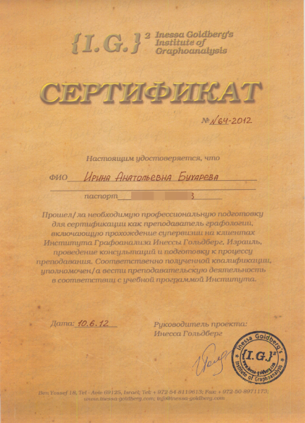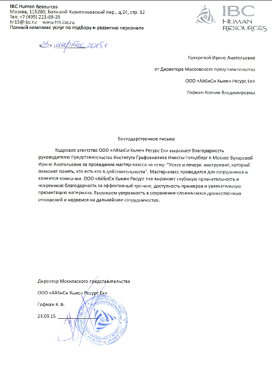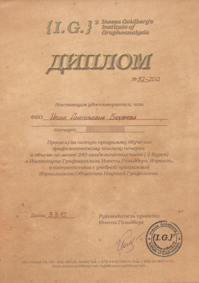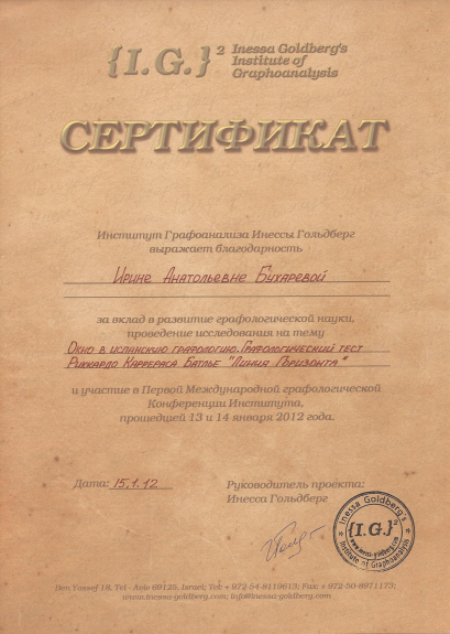 в Центре изучения почерка Ирины Бухаревой "Современная Графология"
